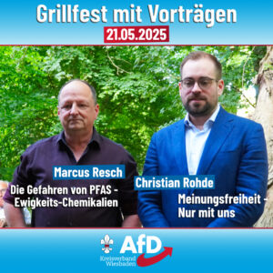 Autor: Sebastian Claar „Sommer, Sonne, Wonne“ – unter diesem Motto veranstaltete der AfD-Kreisverband Wiesbaden am 20. Juli 2025 ein Grillfest für Mitglieder, Freunde und interessierte Gäste. Würstchen, Steaks und eine große Auswahl an selbstgemachten Salaten und frisch gebackenem Kuchen boten Gewähr dafür, dass jeder kulinarisch auf seine Kosten kam. Auch