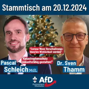 Autor: Sebastian Claar Zur ersten Runde der Wahl des Oberbürgermeisters der Landeshauptstadt Wiesbaden hat der AfD-Kreisverband Wiesbaden einen gemütlichen Stammtisch veranstaltet. Die rund 35 anwesenden Mitglieder und Interessenten trafen sich