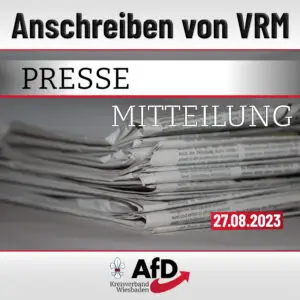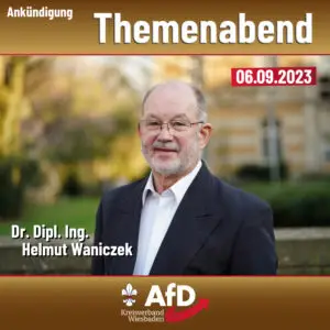 Liebe Mitglieder, Förderer und Interessierte der AfD Wiesbaden, Wir möchten Sie noch einmal auf unsere ganz besondere Veranstaltung aufmerksam machen: Uns ist es gelungen fürMittwoch, dem 6. September 2023 ab