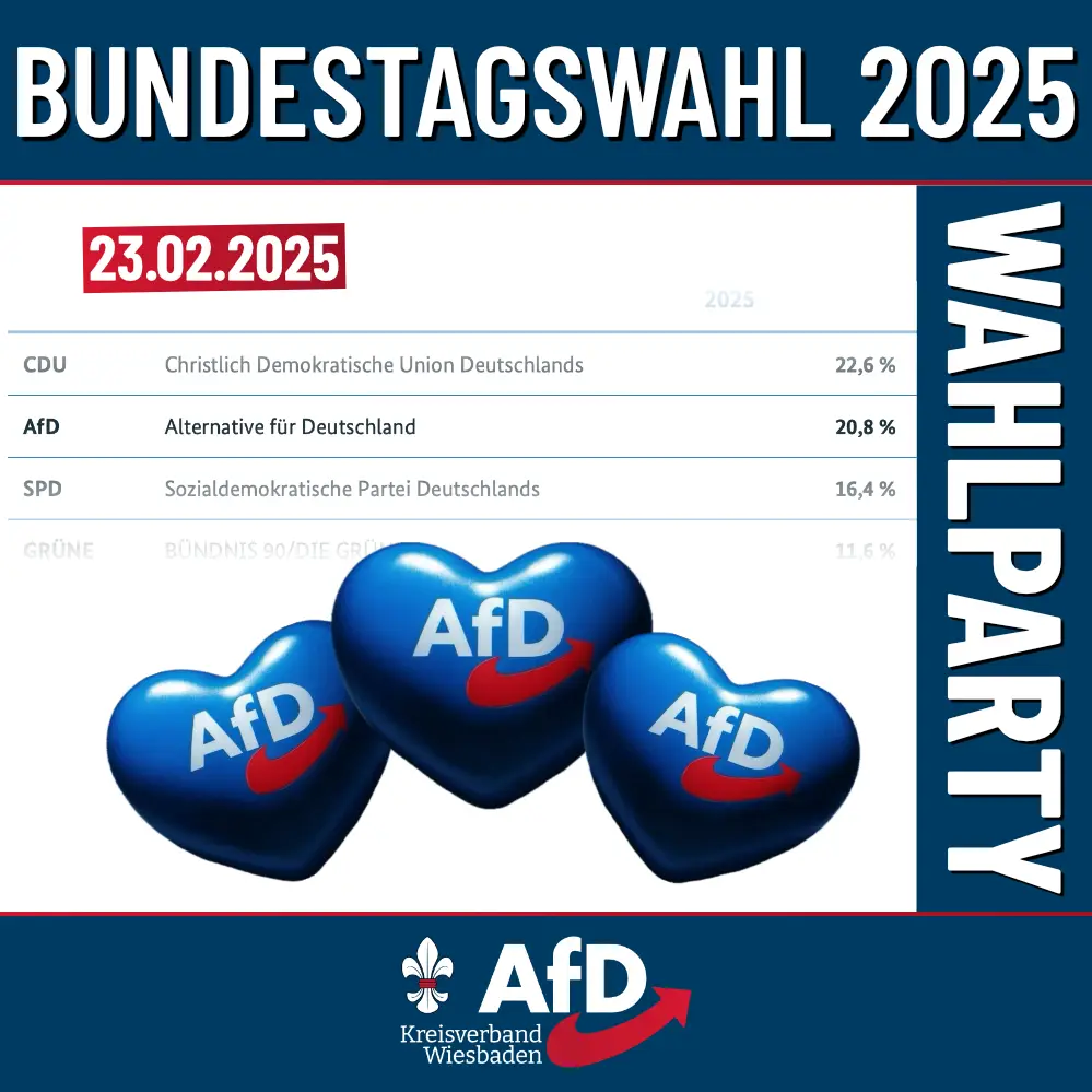 Anlässlich der Wahl zum 21. Bundestag hat die AfD-Wiesbaden am 23.02.2025 eine große Wahlparty organisiert.